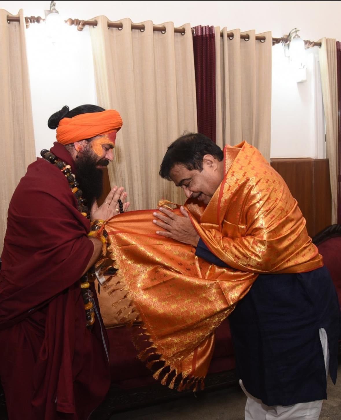 This moment shows Guru Ji sharing the values of hindu sanatan dharma with Shri Nitin Gadkari.